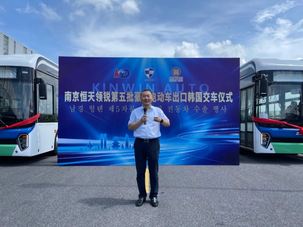 Am 1. August verlie? die fünfte Charge der neuen Energiebusse, die mit der elektrifizierten Plattformtechnologie von Hangtian Leader ausgestattet sind, langsam die Nanjing Hangtian Leader Automobile Factory und wurde über den Hafen von Shanghai nach Südkorea exportiert.