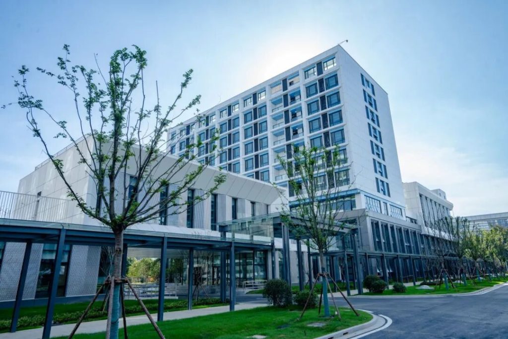 走進廠區,藍白色調的大樓呈現簡約之美,綠色清新的景觀營造良好的環境。一條長長的風雨連廊,將所有樓體串聯,讓工作人員可以不受天氣影響,無障礙步行于工作、生活區間。