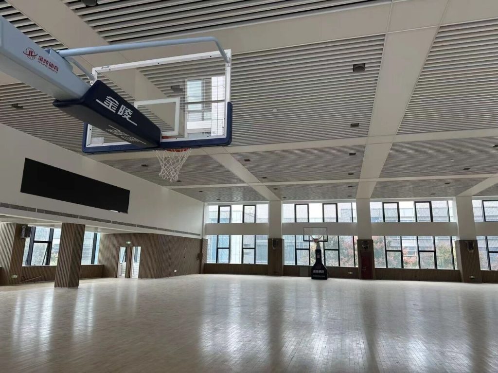 此外,食堂上方還設有巨大的室內籃球場,滿足工人日常運動需求或企業舉辦運動比賽。