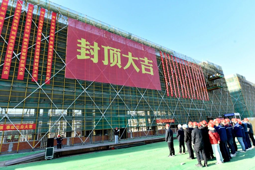 走進位于溧水經濟開發區的項目現場,一幢幢現代化廠房拔地而起。該項目占地55畝,建筑面積約3.5萬平方米,致力于打造國際先進的智能化高端擠出機生產線。從今年2月土地掛牌、3月底實現“五證齊發”開工,到如今主體結構全面封頂,歷時僅8個多月。